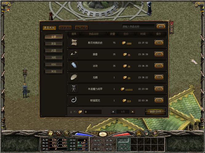 在寄卖市场分页中可以查看和购买所在服务器中的所有寄卖物品;